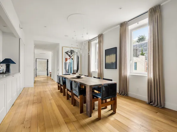 This grandly impressive penthouse at 1 Morton Square is a twelve room trophy property of almost 6,000 square feet with five full bedrooms. It commands some of the most spectacular water and city views in all of Manhattan through 53 large picture windows. The spectacular space boasts a private elevator landing with double doors opening into a nearly 55 foot expanse of entertainment rooms with glass enclosed wood-burning fireplace.