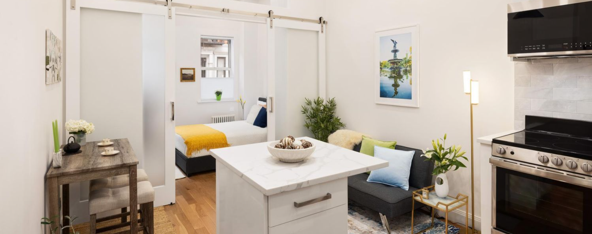 While the doors to the bedroom and the transom help bring some of the southern light into the living area, the only window in this room is a small one in the kitchen, which faces west. Additionally, the building doesn’t allow pets. But for all the modern conveniences the unit offers and its stellar location and price, this place is certainly a steal!