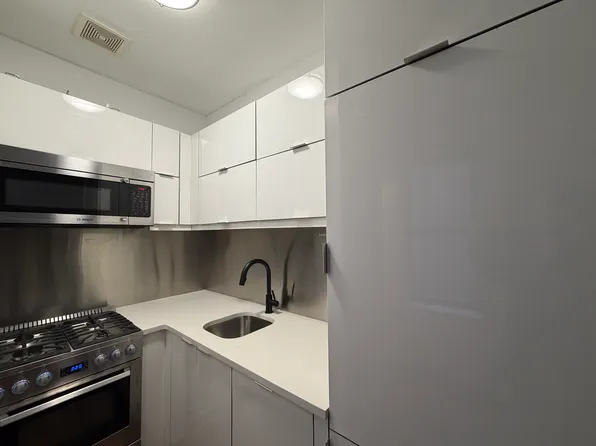 Oversized studio at 1 Bank Street, an elevator rental building in the West Village. Apartment 4D is spacious enough for a king sized bed and living room setup, with wood floors, and an open kitchen and plenty of closet space. Besides its incredible location, 1 Bank Street features a virtual doorman, laundry facilities, package room, bike storage and on-site super.