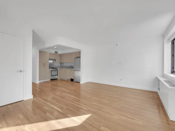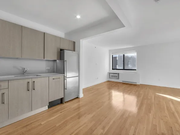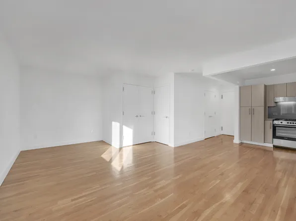 This apartment features a large living space (large enough for living and sleeping) separate windowed kitchen with dishwasher, amazing natural light, abundance of closet space, hardwood floors and high beamed ceilings.