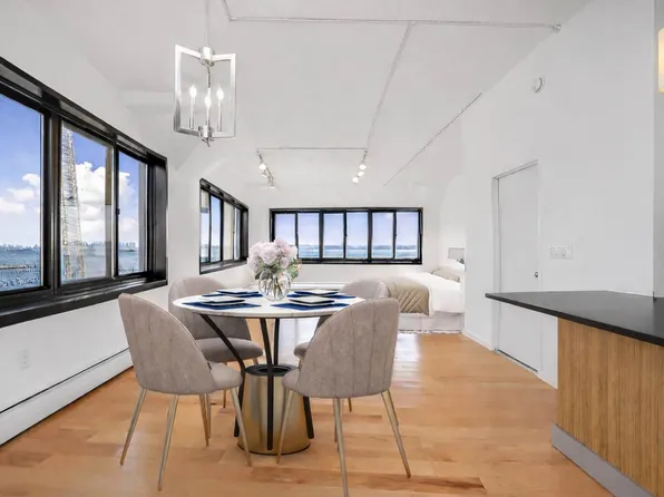 Welcome to waterfront luxury living at its finest! This exceptional residence at 10 Bay St Landing, Unit 3M, offers a unique blend of modern elegance and serene waterfront views. Step into a spacious, open living area where the boundaries between kitchen, dining, and living spaces blur seamlessly. The loft's design maximizes space and natural light, creating an inviting and airy atmosphere.