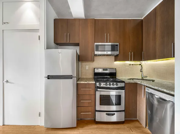 This spacious and renovated studio with a separate kitchen offers great closets, a dressing area, and overlooks Downing Street.