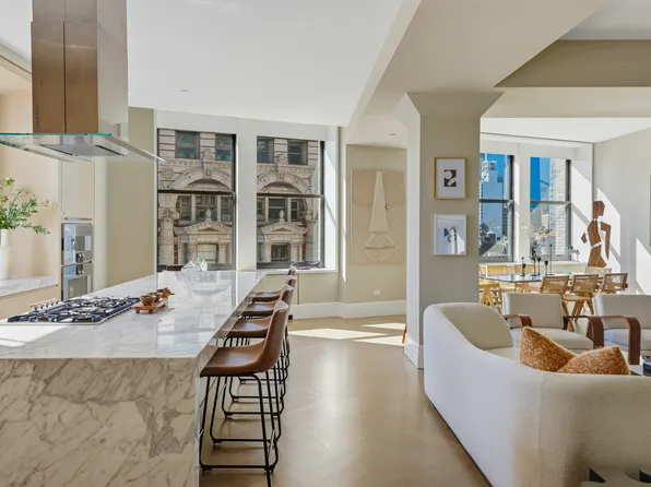 Residence 6G at 10 Madison Square West is a mint condition three-bedroom, three-and-a-half-bathroom condominium overlooking Madison Square Park in the heart of NoMad and Flatiron. Spanning approximately 2,354 square feet, the home offers exceptional natural light and open views of Madison Square Park’s seasonal foliage along with surrounding architectural landmarks including the MetLife Clock Tower, and the Flatiron and New York Life Buildings.