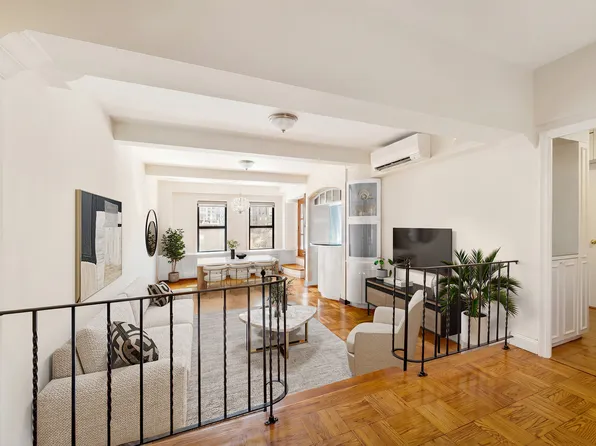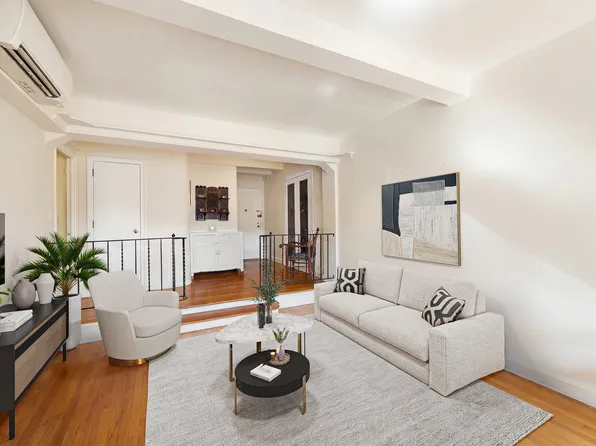 This move-in ready one-bedroom, one-bathroom cooperative offers a bright and inviting living space enhanced by classic pre-war charm—including beamed ceilings, hardwood floors, and oversized casement windows.