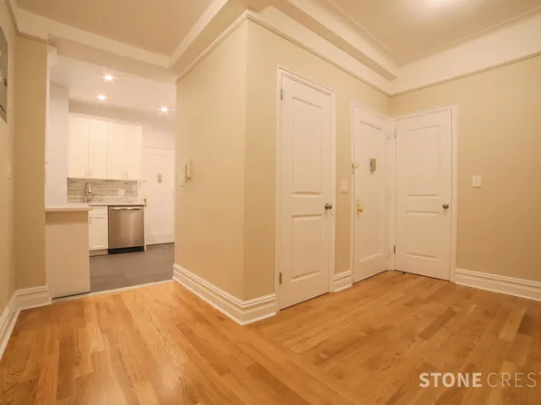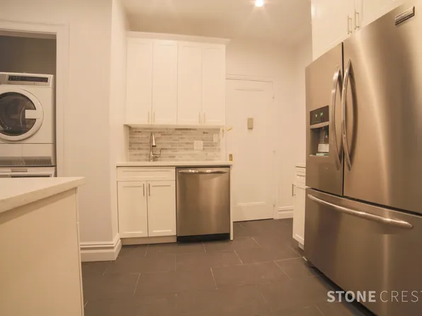 The apartment features high ceilings, hardwood floors, new kitchen with dishwasher, washer/dryer in building.