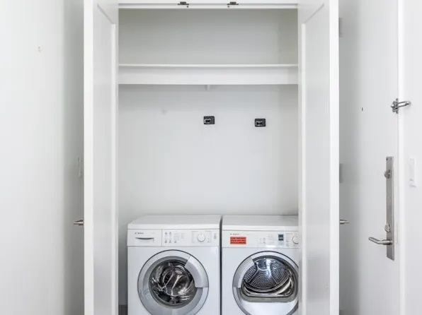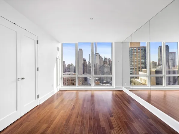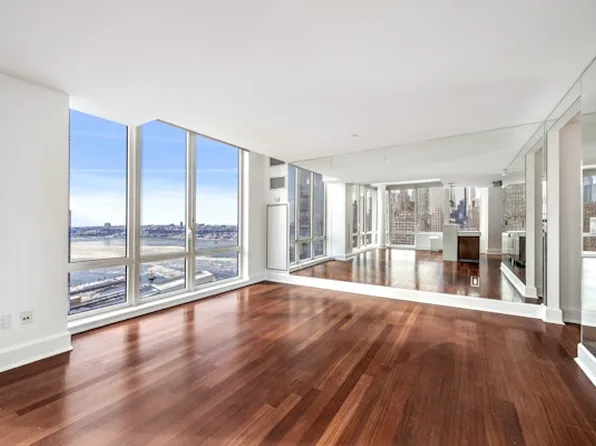 Simply Stunning. Sweeping, open skyline and Hudson River views from tall floor to ceiling windows grace this two bedroom, two bathroom luxury condominium residence. The glass framed terrace features Southern, Western and Eastern views and is just breathtaking. Tall ceilings and hardwood floors throughout. The windowed kitchen features top of the line appliances including a Sub Zero refrigerator, Viking stove, Bosch dishwasher, a temperature controlled wine storage and a Bosch washer/dryer.
