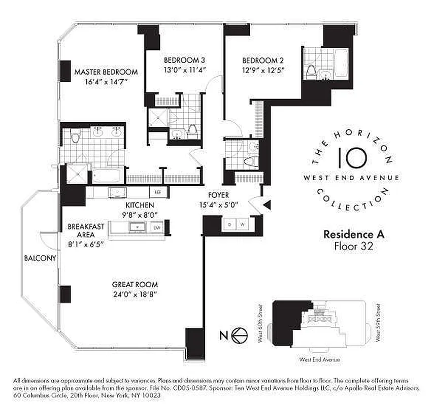 Three bedrooms, three exposures. The Horizon Collection's 32A is a spectacular 3 bed, 3 1/2 bath with 11' ceilings facing North, East and West offering panoramic views of the Hudson River, Empire State Building and the GW bridge. With an abundance of counter and cabinet space, the kitchen opens onto a 24'x18'8 Great Room and 119 SF personal balcony.