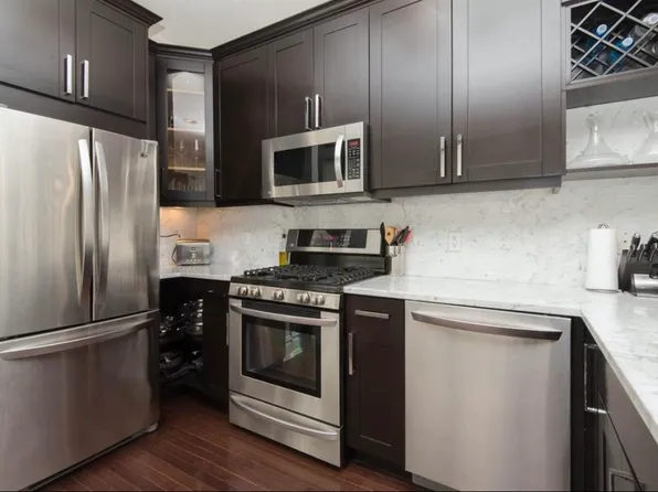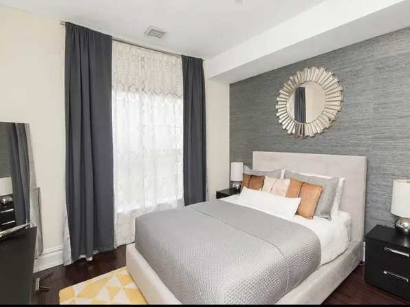 Elegant 2 bedroom, 2 bath, with PARKING!! in newer building. - Exquisite finishes -- Enjoy living in this open plan home with just refinished solid oak floors and chef's kitchen featuring beautiful solid Mahogany cabinets, Granite counters, a Stainless Steel appliance package including: dishwasher, microwave, refrigerator and gas range.