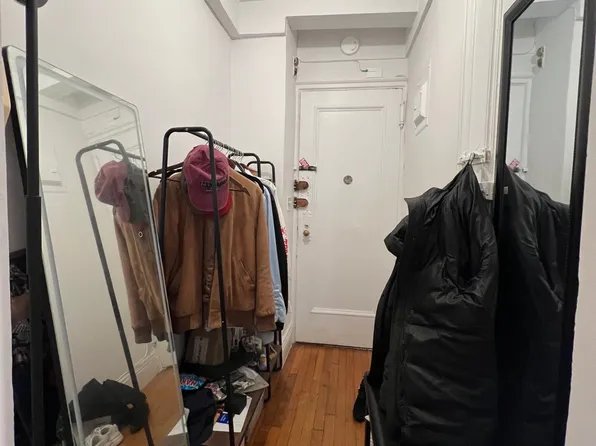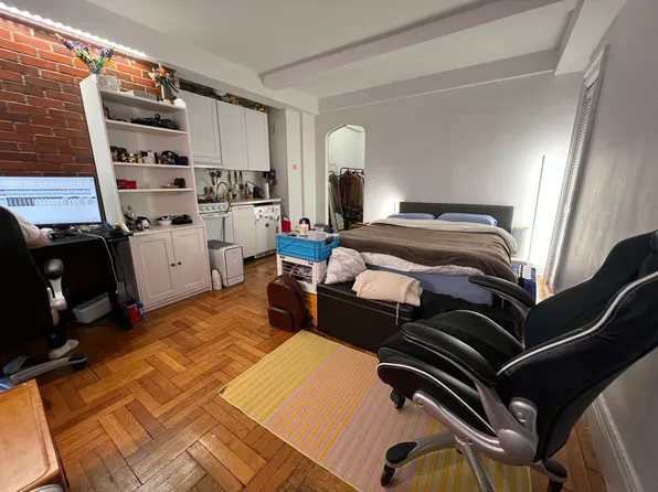 You will love the brand new kitchen with custom white cabinetry, electric cooktop, convection oven and double refrigerators. The bath was designed in warm grey tones. This quiet, private studio has plenty of prewar charm too. Features include a custom built-in desk, murphy bed, soaring 10 foot ceilings, hard wood floors, two jumbo-sized closets with custom drawers and an abundance of storage.