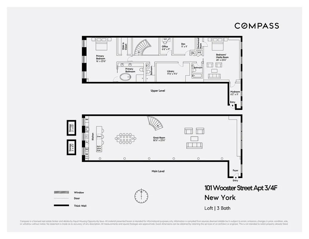 Listing by Compass, Corporate Broker, 110 5th Avenue, New York, NY 10011