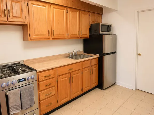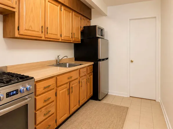 This charming corner studio offers a spacious living and sleeping area, a separate kitchen with marble flooring and full-size appliances, two closets, ample windows that flood the space with natural light, and a beautifully renovated bathroom.