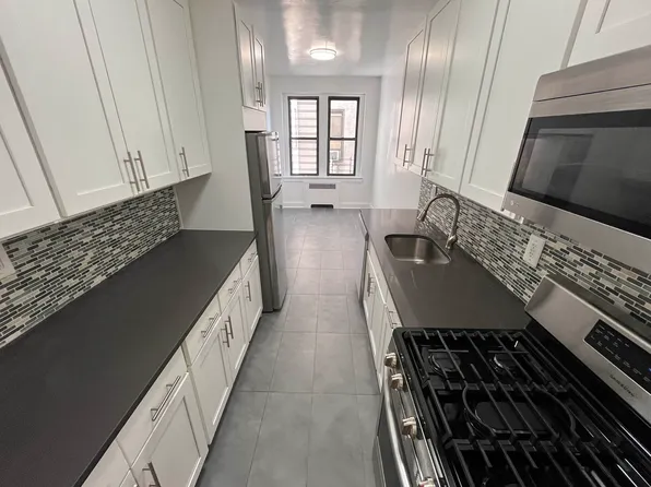 Gorgeous fourth floor renovated two bedroom located on 6th Avenue between 108th Street and Yellowstone Blvd., terrific Forest Hills location. Sunny and bright, this two bedroom has it all including renovated large windowed kitchen with stainless steel appliances with dishwasher and microwave, corian counter tops, ceramic tile floor and lots of storage. Separate dining area. Pretty wood floors.