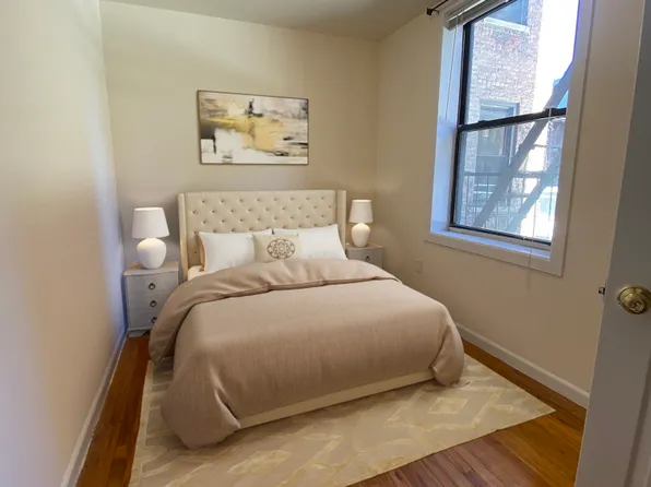 This renovated 2 bed/1.5 bath home is located on the ground floor of a walk up building and features two queen size bedrooms, recessed lighting, stainless steel appliances including a dishwasher, in-unit washer/dryer, and a marble bathroom.