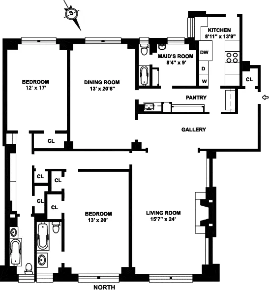 ESTATE SALE! Renovated 10 years ago- Gracious sun-flooded Park Avenue pre-war classic-six on high floor featuring approximately 2,150 SF with 2 bedrooms, 2.5 bathrooms, formal dining room, windowed kitchen and maids' room. All generously proportioned rooms enjoy open North or South exposures and feature lots of pre-war details, including beamed ceilings, moldings, hardwood herringbone floors, wooden window shutters and excellent closet space.