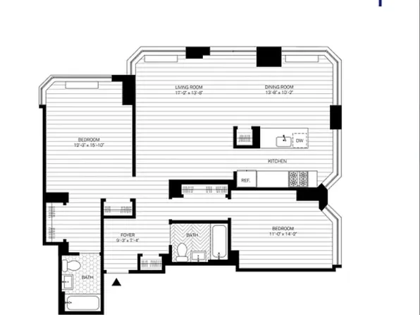 2 bathrooms (on has a tub, one has a shower).