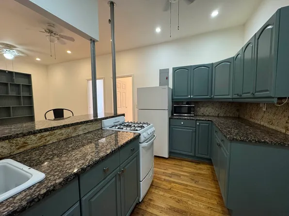 The separate kitchen area features modern appliances, stylish countertops, and plenty of storage, perfect for creating your favorite dishes.