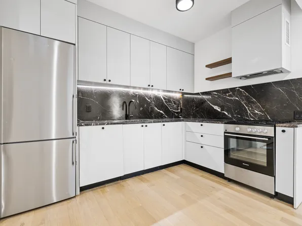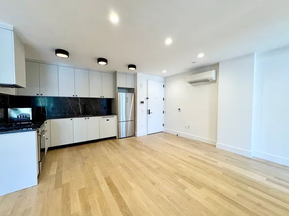 Bright and open, this residence combines modern updates with classic Brooklyn character. Natural wood floors, high ceilings, and large windows bring in plenty of light, framing views of the neighborhood. The open kitchen features stainless steel appliances and flows easily into the living space. The bathroom is finished with tasteful tiling and fixtures, and the home includes an in-unit washer and dryer for your convenience.