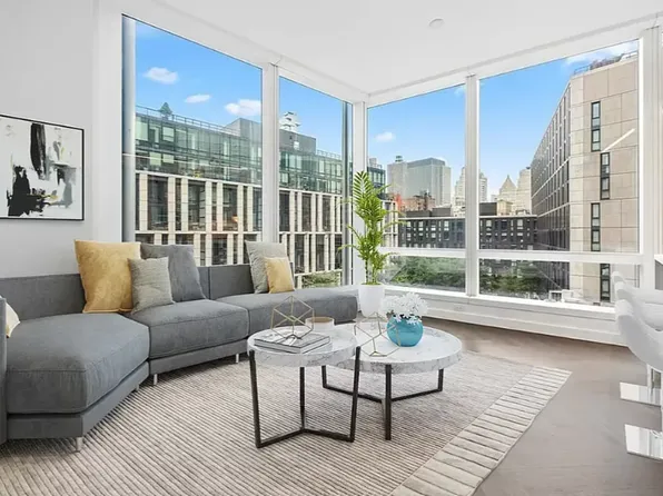 At 755 square feet, this oversized alcove studio residence offers exceptional proportions, refined design, and south-facing exposures with ceilings soaring up to approximately 10'7". A gracious formal entry foyer leads into a beautifully scaled 24'1" x 11'8" living room, complemented by a separate 9'3" x 9'9" dining area — creating distinct yet fluid spaces for both entertaining and everyday living.