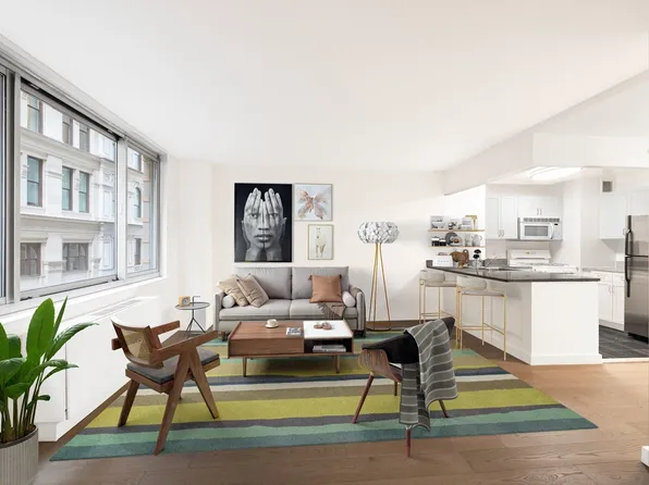 Fully outfitted and newly renovated apartments meet spectacularly landscaped terraces for chic Tribeca living. The bright studio, 1- & 2-bedroom apartments and penthouses include Calacatta Ultra quartz countertops in kitchens, Moen brushed nickel fixtures, wood-like flooring in living areas, and porcelain tile in kitchens and baths. The insulated double-pane windows showcase generous Foley Square and Thomas Paine Park views.
