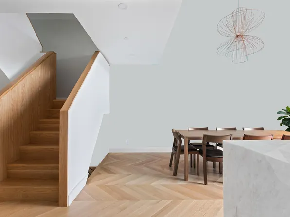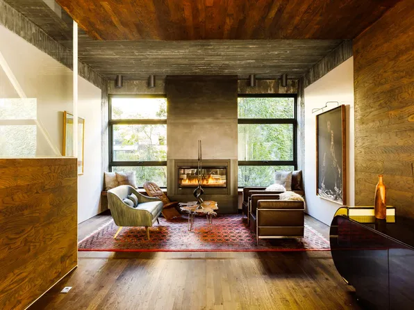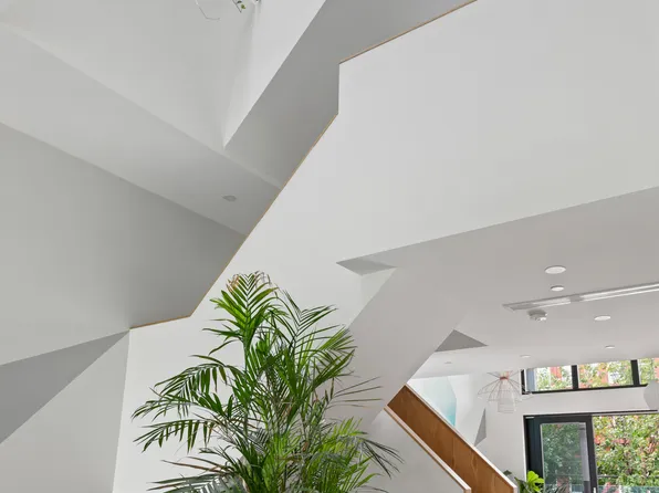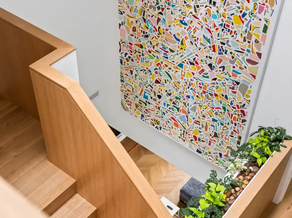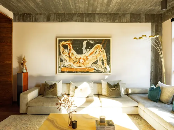 Inside this 2,996-square-foot showplace, ceilings soar up to 14 feet above exquisite white oak chevron floors and expansive art walls.