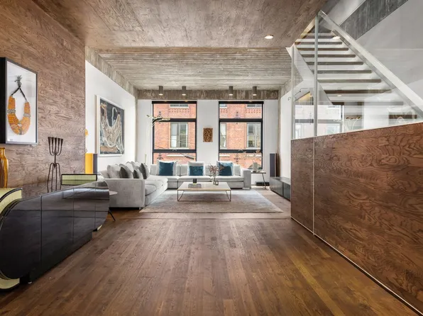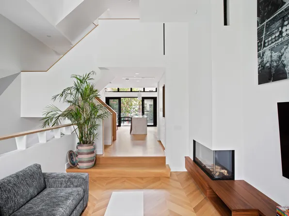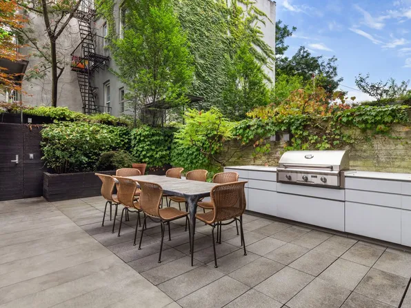 Impeccable contemporary luxury awaits in this sun-splashed four-bedroom, three-and-a-half-bathroom triplex condominium featuring dramatic proportions, upscale designer finishes, and three levels of private outdoor space in the heart of North Williamsburg, just two blocks from McCarren Park.