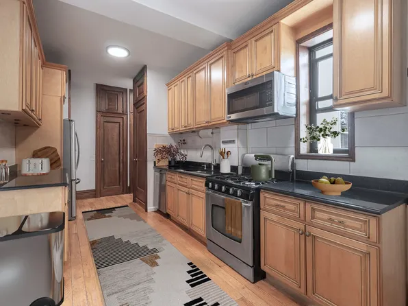 Pre-war two-bedroom home directly across the street from Morningside Park. Features include a large, windowed and renovated kitchen, high ceilings, a renovated windowed bath, hardwood floors, and a flexible layout. In addition to the generous closet and overhead storage space in the unit, apartment 45 comes with two dedicated storage areas in the basement.