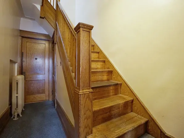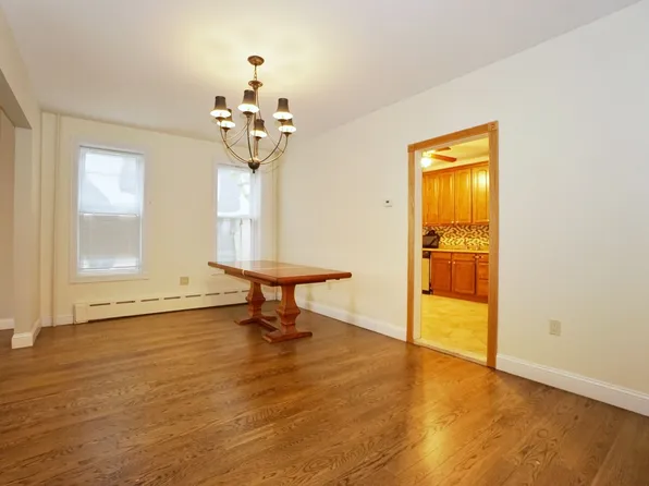 This is the middle unit whole floor-through apartment (up a few steps on the front stoop,) with private use of the backyard patio, 2 car parking garage, and the storage room next to the garage. Owner will also permit use of the front yard patio as well.