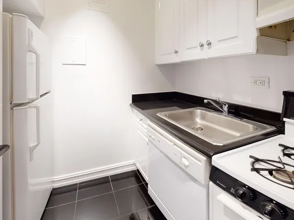 Upgraded Jr.1 bedroom apartment with exposed brick walls, granite kitchen with updated appliances including a dishwasher.