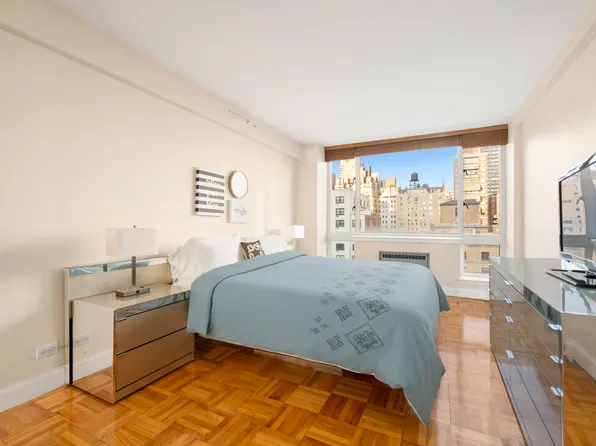 Sun-filled 3-bedroom, 2-bath corner residence on the 17th floor of the full-service, pet-friendly York River House— this beautifully renovated home features custom built-ins and molding, designer lighting, hardwoods throughout, and offers views of the East River, Chrysler Building, and the NYC skyline.