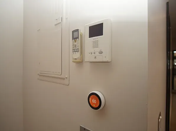 The living room is spacious and filled with natural light thanks to floor-to-ceiling windows with costumed window shades that open to breathtaking views from a huge balcony—perfect for lounging or entertaining. Full Nest thermostats.