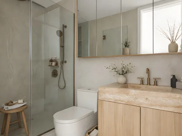 Boasting stunning heavy timber ceilings and a prime Greenpoint location, this brand new 2-bedroom, 2-bathroom home fuses old-world charm with contemporary city luxury. This 1,243 sq. ft. apartment is loft-like and suffused with natural light, and it features restored 19th century redbrick walls, oversized double-pane Low-E windows, white oak engineered...