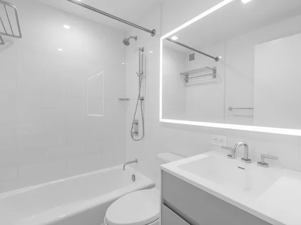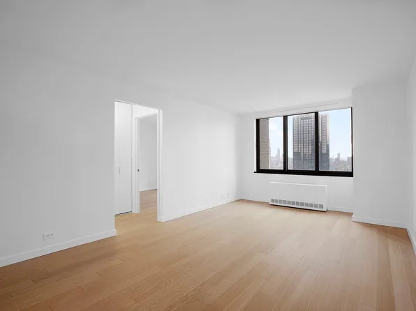 Welcome home to this beautiful high-luxury modern large one-bedroom. The oversized floor to ceiling windows and high ceilings that provide abundant natural bright sunshine throughout. The pass-through kitchen design with granite countertops, stainless steel appliances, and ample custom cabinetry with plenty of drawer space. Polished hardwood floors throughout and the marble-clad bathroom that includes a deep soaking tub.
