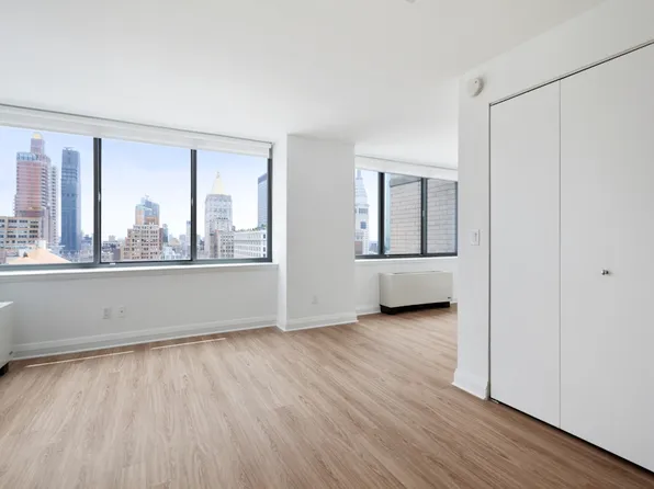 Penthouse studio apartment available for immediate occupancy. Enjoy unobstructed views of the Empire State Building and Midtown Manhattan in both the living space and on this unit's massive outdoor terrace. In addition, this home also features a wrap around, covered deck.