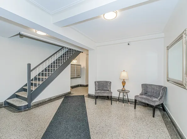 Enter into a spacious living room showcasing beautifully refinished hardwood floors, 9-foot ceilings, and charming archways. The sleek, renovated kitchen features granite countertops, stainless steel appliances—including a dishwasher and microwave—and abundant cabinetry.