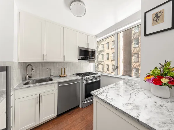 This sun-filled, beautifully proportioned one-bedroom offers a special chance to call this coveted Gramercy location home. Perfectly positioned at East 18th Street and Irving Place, the residence opens with a welcoming foyer, oversized entry closet, and pristine hardwood floors. The south-facing living/dining room is bright and spacious, with open-sky views through large windows.