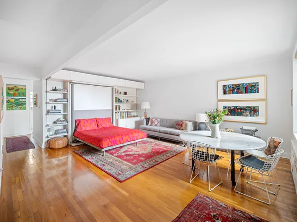 Step into this beautifully maintained one-bedroom, one-bath co-op featuring a spacious layout, excellent condition, and a large private patio perfect for relaxing or entertaining. This home offers an abundance of closet space and comes fully furnished, excluding the bed in the primary bedroom.