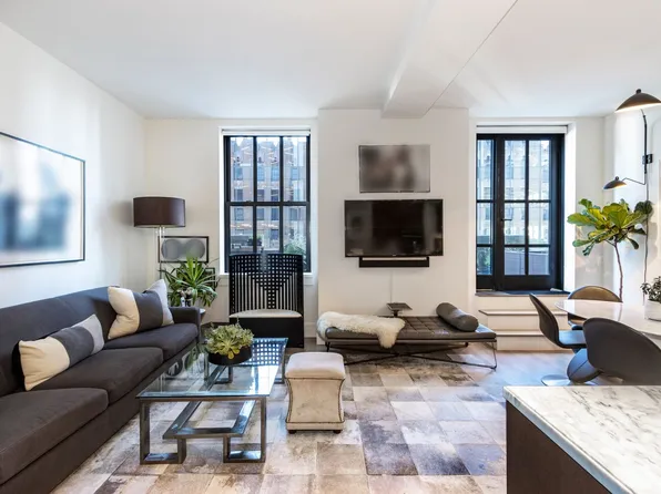CONDO RULES, NO BOARD APPROVAL. Spectacular triple mint home located on one of the most desirable Tribeca blocks. Can easily add a large 2nd Bedroom. No detail was spared in the gut renovation of this Loft boasting 13' Ceilings, WBF, Exposed Brick, Cast-Iron Columns & 9' Windows facing North onto historic Duane St. The 27.8' wide Great Room is ideal for entertaining.