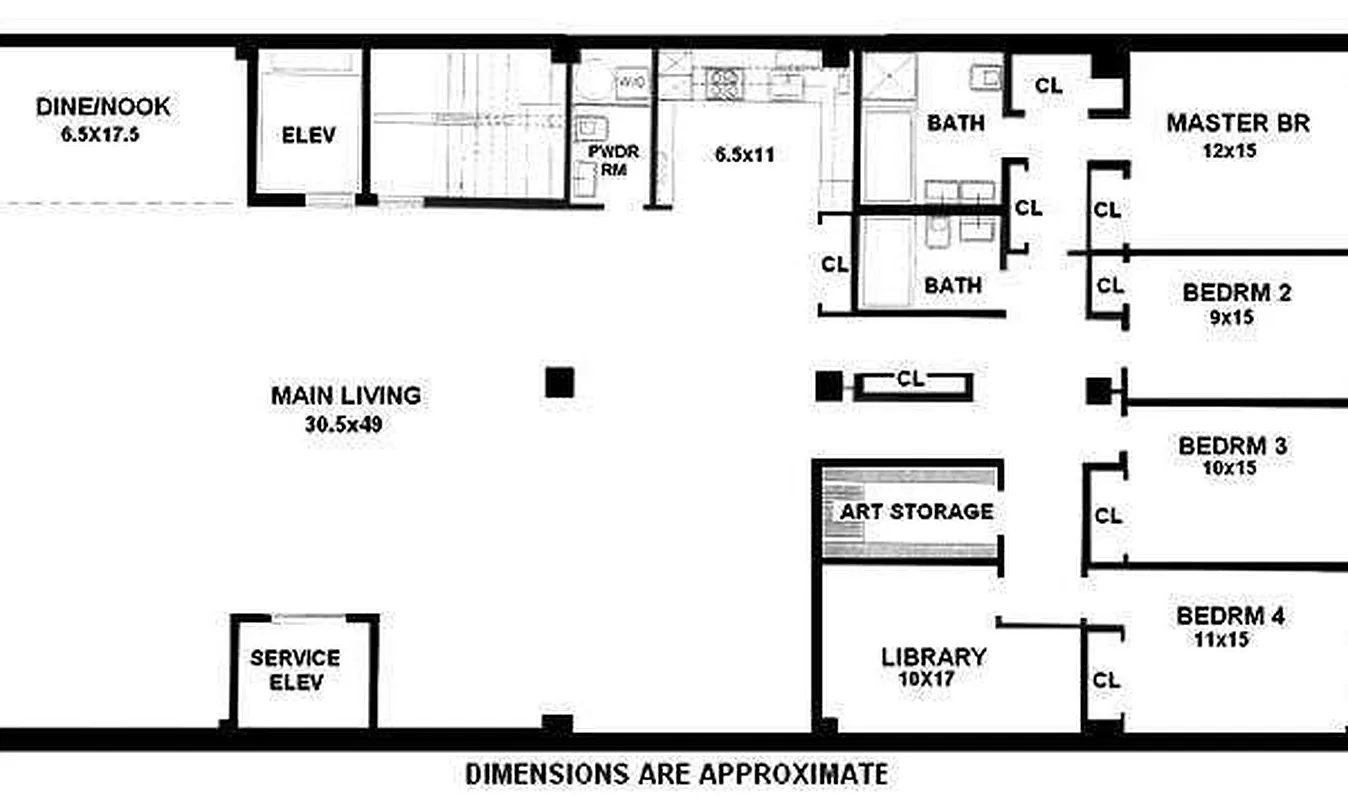 PRICE REDUCED!! FULL FLOOR--3970 SqFt! Four Bedrooms, 2 Baths Plus Powder Room, 11+ Ft Ceilings, 43 Foot Wall of Windows with Empire State Building Views in Huge Expansive and Open 1800 SF+ Living Room, Dining Area, Interior Library/Study with Custom Bookcases, Art Storage Room, Private Floor, Elevator Building, Video Security, New Birch Floors, Stone-Tile Baths, Recent Renovation.