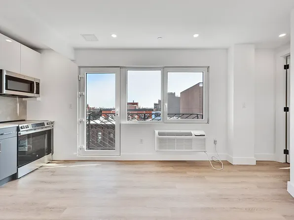1425 Fulton is a brand new luxury boutique rental building in the heart of Bed Stuy. Each residence has custom finishes and open living spaces. 5B is a 1 bed + home office/den with floor to ceiling windows and tons of light. There are wide plank floors, a gourmet kitchen, and a blackout roller shade covering the huge bedroom window.