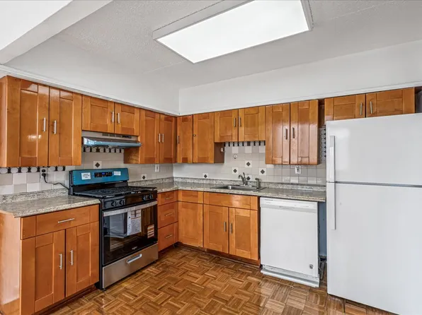 Welcome to Wisteria Plaza Condominium ! Motivated Seller ! The Unit Offers 1,176 SQFT of Living Space - 2 Bedrooms, 1 Full Bath & 1 Half Bath and Eat-in Kitchen. Corner Unit Features a Spacious Living Room and Manhattan Night View from Living Room, Hardwood Floors Throughout and a Balcony. Low Common Charge of $536 Includes Heat, Water and Cooking Gas.