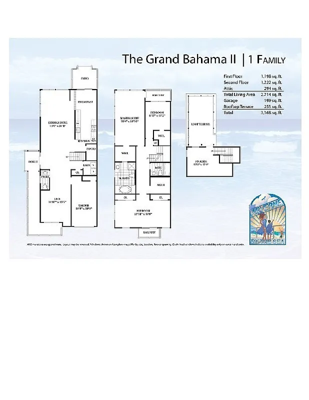 This gorgeous single-family Grand Bahama model sits on a 3,667 square foot lot with 2,714 Sqft. of living space, plus a private garage, yard, porch, patio, 2 balconies on the second floor, and a bonus room and huge private roof terrace on the third floor.