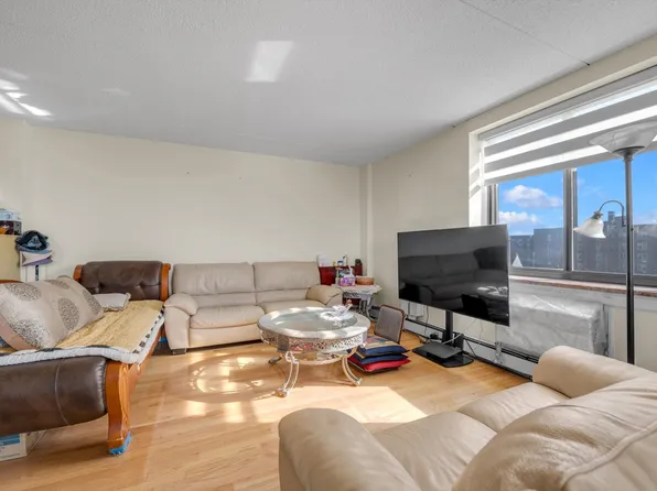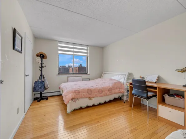 This stunning two-bedroom penthouse high-rise condo in Flushing features 985 sq ft of interior space and a 400+ sq ft terrace with a balcony offering breathtaking Manhattan views. The condo is equipped with an in-unit washer and dryer and a walk-in closet in the master bedroom. The building boasts a full array of amenities, including a doorman, gym, sauna, meeting room, and table tennis room.