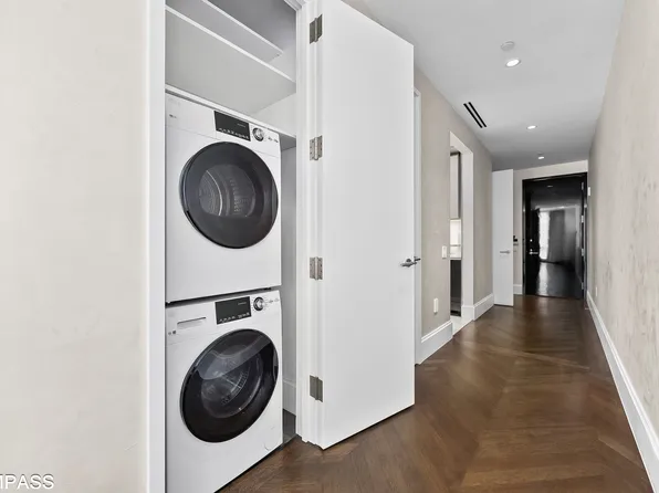 Welcome to the expertly designed, triple mint renovated Residence 15K. Completely reimagined from the ground up by HS2 Architecture, you are greeted with a large entry foyer adorned with Maya Romanoff red lacquered walls standing in beautiful contrast to the honey-colored wide plank walnut hardwood floors. This once traditionally designed apartment has now been carefully crafted with an eye towards understated elegance.