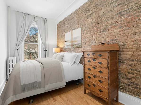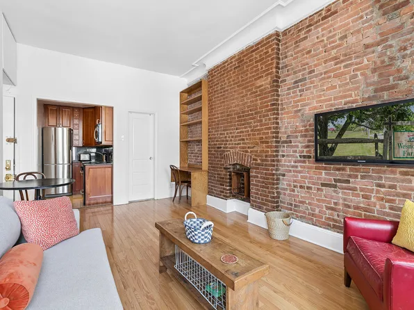 Once you walk into this beautiful townhouse apartment, you will be greeted with a long entryway with exposed brick wall all the way to the living area. Bright and quiet, the apartment features hardwood floors throughout, crown moldings, a windowed kitchen, wood burning fireplace, and a King size bedroom.