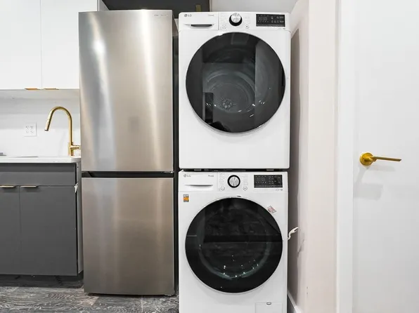 Natural light floods this spacious 2-bedroom apartment from large windows throughout. Designed with a modern, clean design, the full kitchen opens into a large living room, and features white cabinets, granite counter tops, and brand-new full size, stainless-steel appliances, including dishwasher.