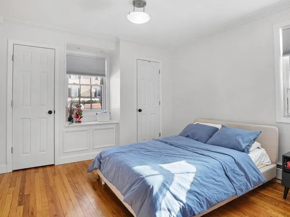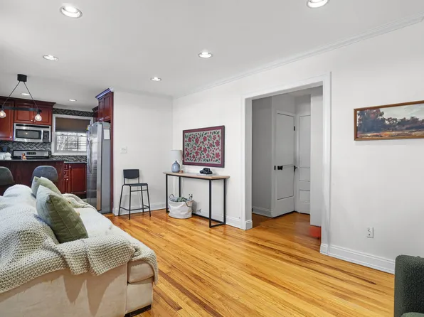 Updated Upper Corner 2-Bedroom (5-Room) Apartment with Attic This spacious, sun-filled upper corner unit offers two generously sized bedrooms and an additional bonus attic space. New floors flow throughout the entire apartment, adding charm and warmth. The large living room and dining room seamlessly open to a renovated kitchen featuring stainless steel appliances and a hidden washer/dryer unit for convenience.