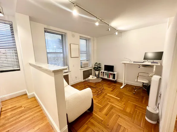 A large one bedroom with 2 large closets at the entrance and 2 more closets, full-service luxury condominium with a pre-war details and quality construction. Gracious Foyer/Gallery leads into spacious Living Room, and separate Kitchen/Dining area off the Living Room.