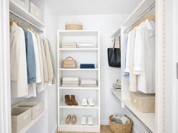 King size bedroom with windows and closets