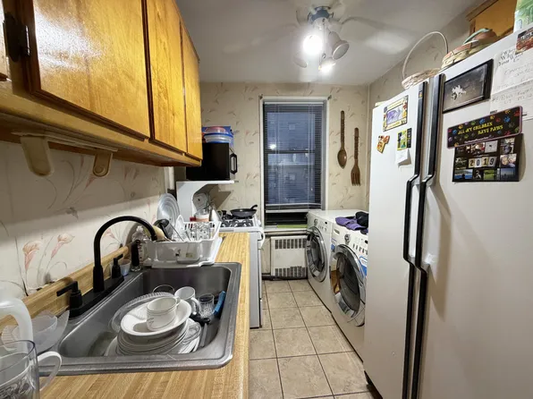 The apartment needs updating but is very large at 1,000 sqft with an excellent layout. Hardwood flooring all through out, eat-in kitchen with a window, windowed bathroom, numerous large closets.