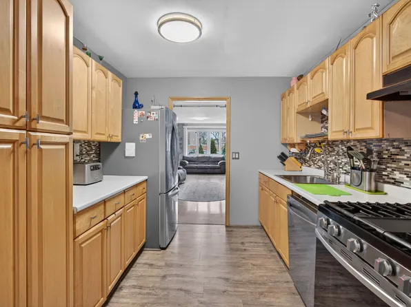 Marine Park! 30x100 with Private Driveway! This 3 Bedroom duplex has beautiful hardwood floors throughout. First floor has a large living room, formal dining room and a large eat-in-kitchen with rear sliding doors to the back yard. The 2nd floor has 3 good sized bedrooms and a full bath. The basement is finished and has a 3/4 bath. A must see!!
